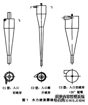 第三類因素(操縱條件):水力旋流器出、人口壓力和滋流等。選擇cl,cZ和C3型三種水力旋流器作為實(shí)驗(yàn)對象,進(jìn)行了大量的實(shí)驗(yàn)室實(shí)驗(yàn)篩選。